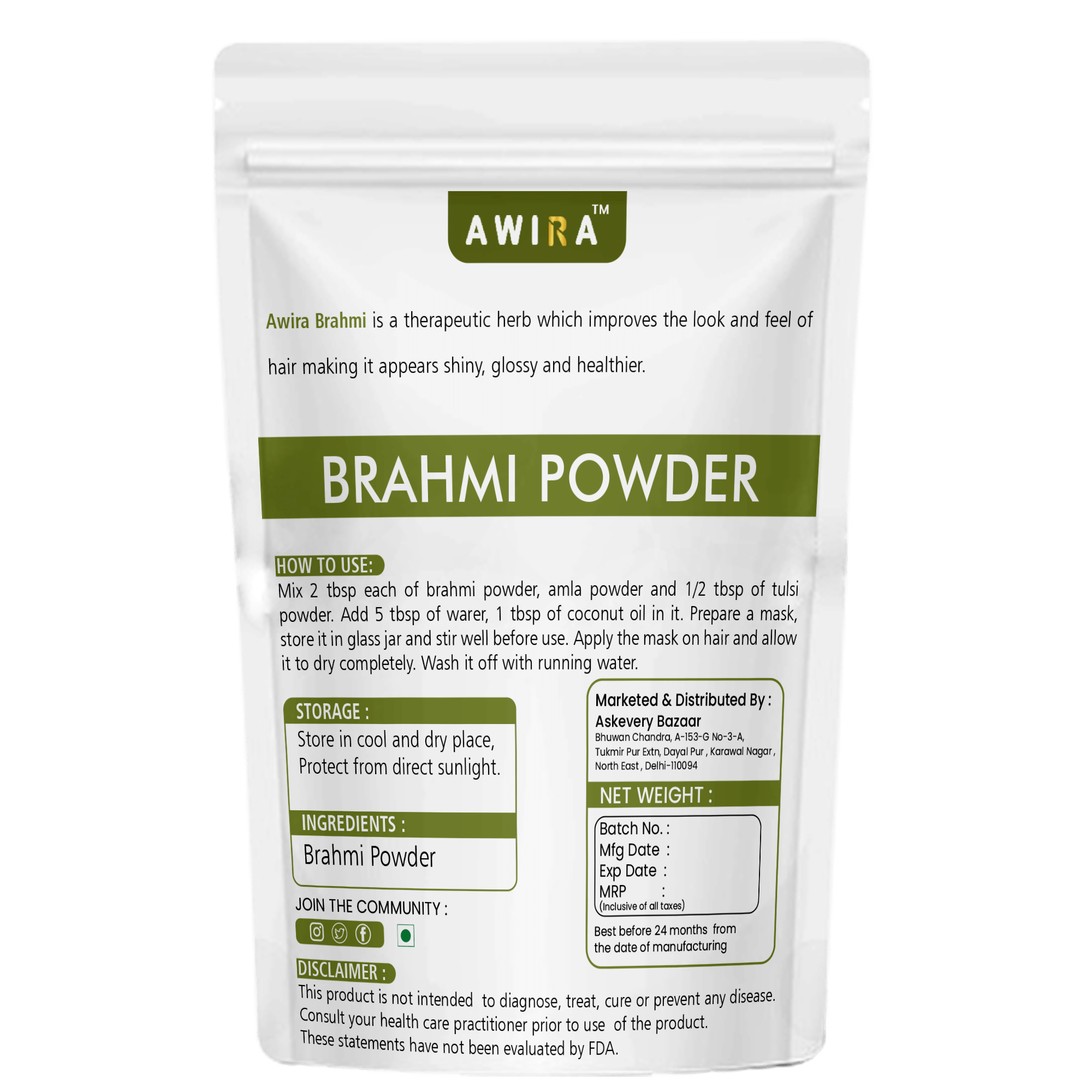 About Awira Brahmi Powder for Hair Growth