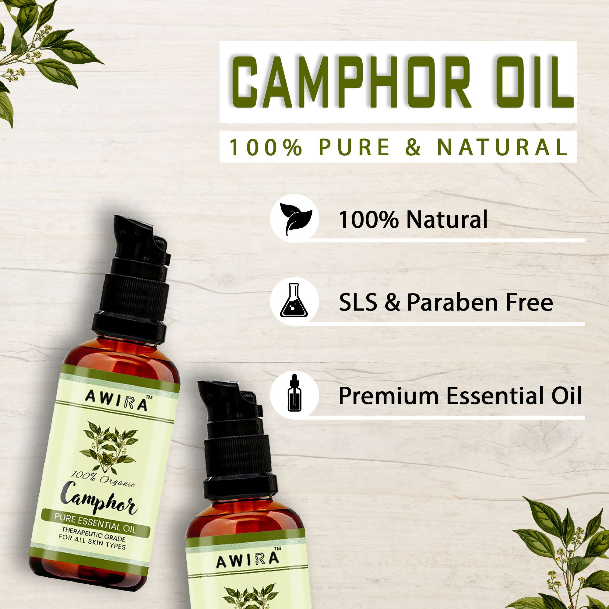 • Awira Camphor Essential Oil – 100% Pure Natural & Undiluted For Skin Care & Hair Treatment