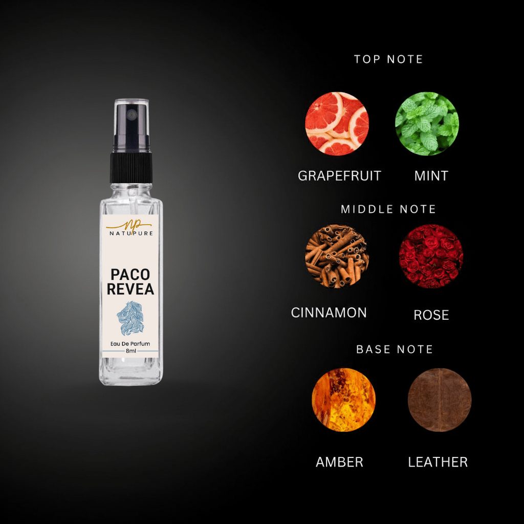 Natupure Paco Revea Eau de Parfum – 8ml Spray | Citrus & Spice Fragrance