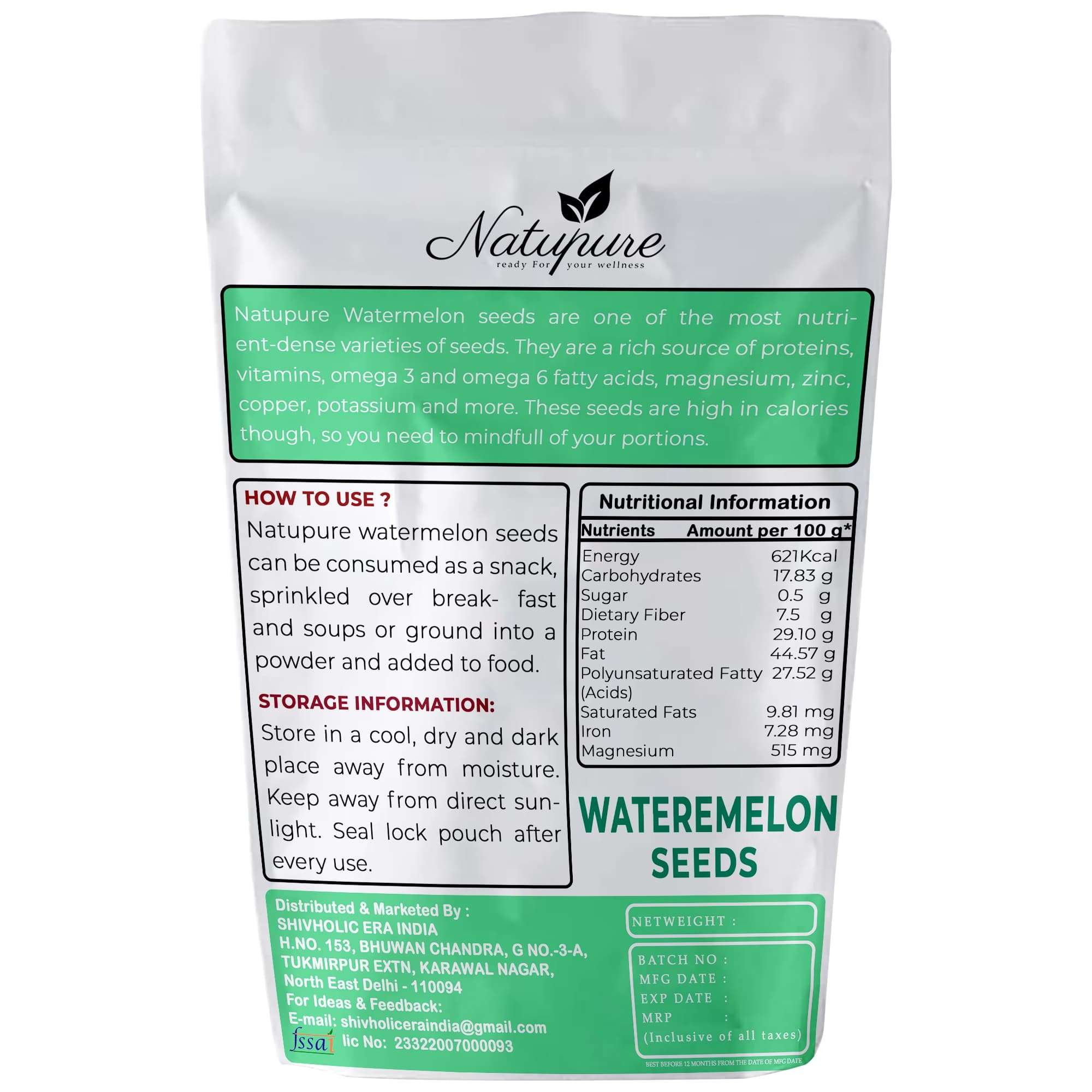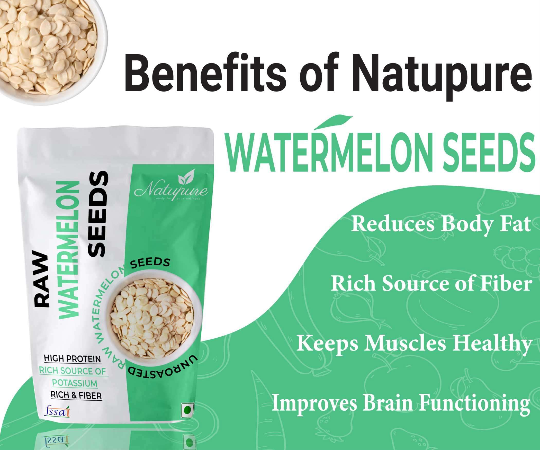 Natupure Raw Watermelon Seeds Our seeds are a nutritious and tasty snack. These seeds are large and delicious. They’re a good source of protein, fibre, and minerals.